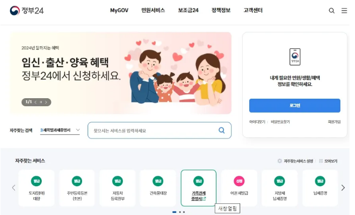 2.가족관계증명서 민원 24, 정부 24 발급 방법