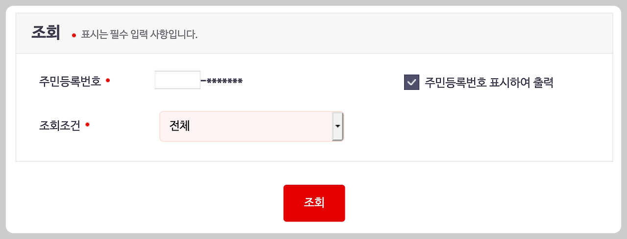 조회조건을 선택한 후 조회 버튼을 눌러 줍니다.