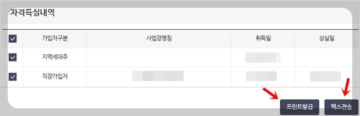 아래에서 프린트 발급 버튼을 누르시면 발급이 완료됩니다. 또한 팩스전송을 누르시면 팩스로도 전송이 가능하니 참고하시기 바랍니다.