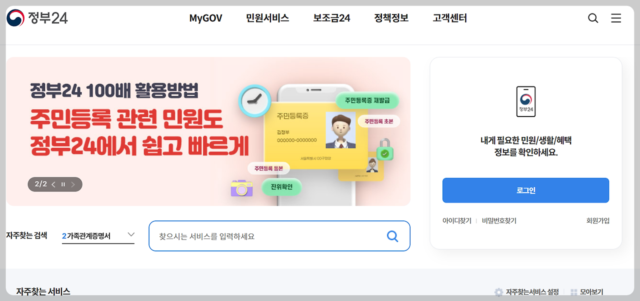 필요한 서류를 발급받을 수 있는 옵션을 선택할 수 있습니다. 이 과정에서 본인 확인이 필수적이며, 일반적으로 주민등록번호와 같은 개인 정보를 제공해야 합니다.