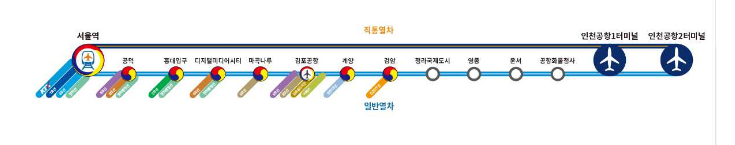 일반 열차는 일상적인 지하철 역할로 주로 직장인들의 출퇴근에 이용됩니다. 직통열차는 서울역과 인천공항 간을 이동하는 급행열차로 생각하실 수 있습니다.
