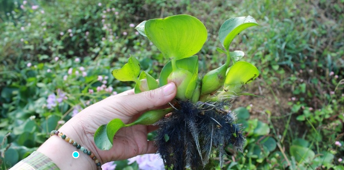 부레옥잠은 흔히 수조나 작은 연못에서 관상용으로 쓰이며 밑에서 잔뿌리가 많이 나오고 옥잠화 잎처럼 생긴 잎도 많이 나옵니다.