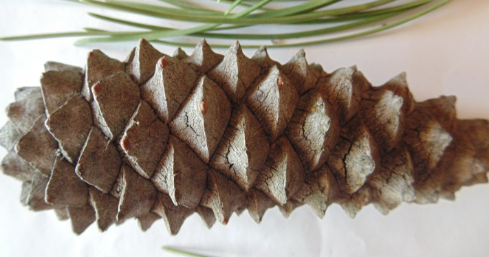 열매는 솔방울 열매로 5-25cm 길이의 원통형인데 하늘을 향해 곧추 서며 여물면 벌어져 날개 달린 씨가 나옵니다.